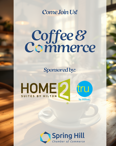 Connect with us for Coffee & Commerce, our monthly morning networking event designed to help local business professionals build relationships, exchange ideas, and stay connected with the Spring Hill community.