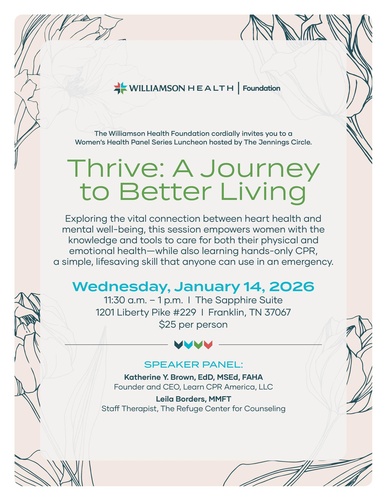 The Williamson Health Foundation cordially invites you to a Women's Health Panel Series Luncheon hosted by the Jennings Circle. Click here for more information!